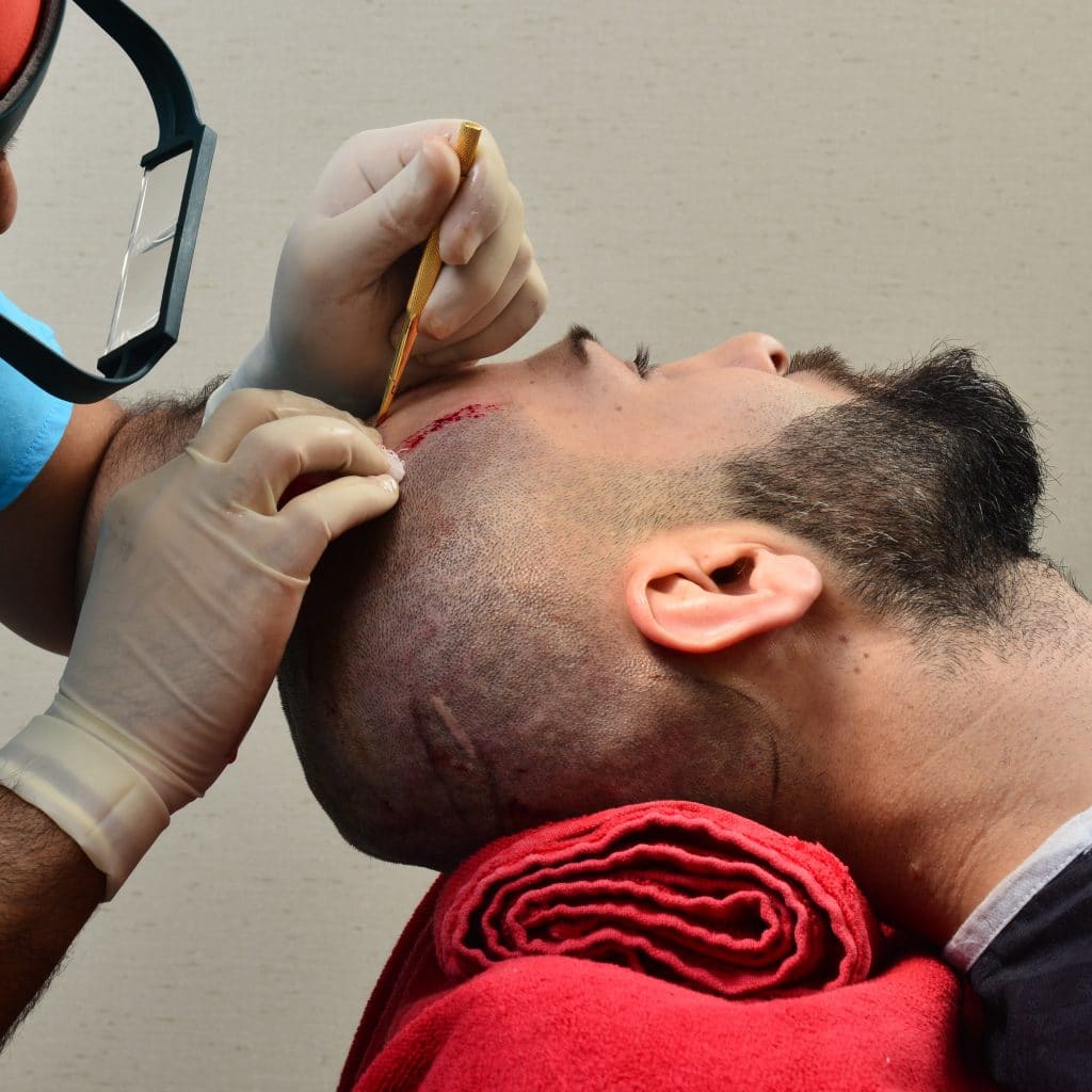 The majority of scarring that Evoke technicians see is from hair transplantation, both FUT and FUE.